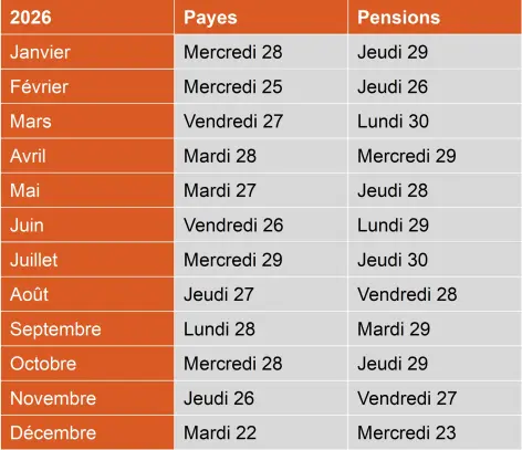 État : quand vais-je recevoir ma paye ou ma pension mensuelle ?
