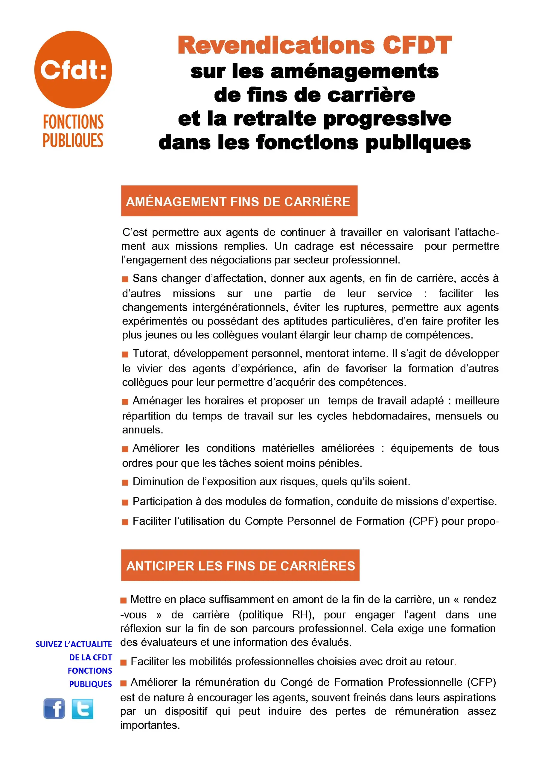 Revendications CFDT sur les aménagements de fins de carrière et la retraite progressive dans les fonctions publiques