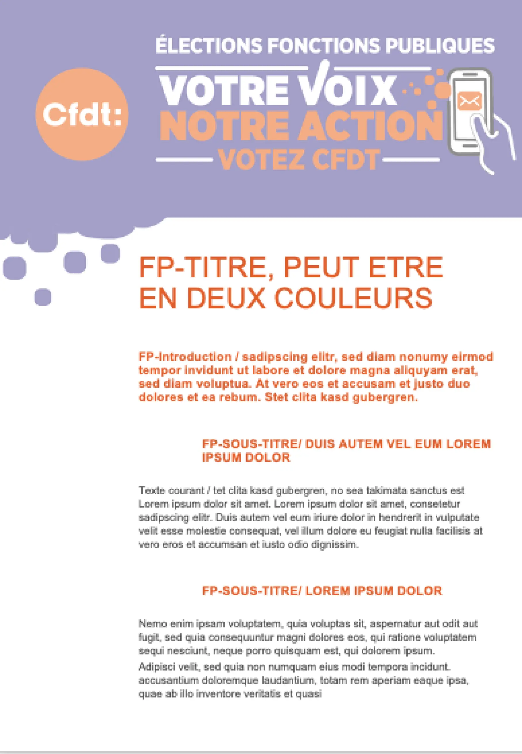 Ces maquettes, de plusieurs couleurs, sont en format word ce qui vous permet de les adapter à vos besoins et d’y insérer vos logos (syndicat, QR Code, Facebook...) et coordonnées. Si vous ne souhaitez qu’une page, il vous suffit de supprimer le saut de page.
