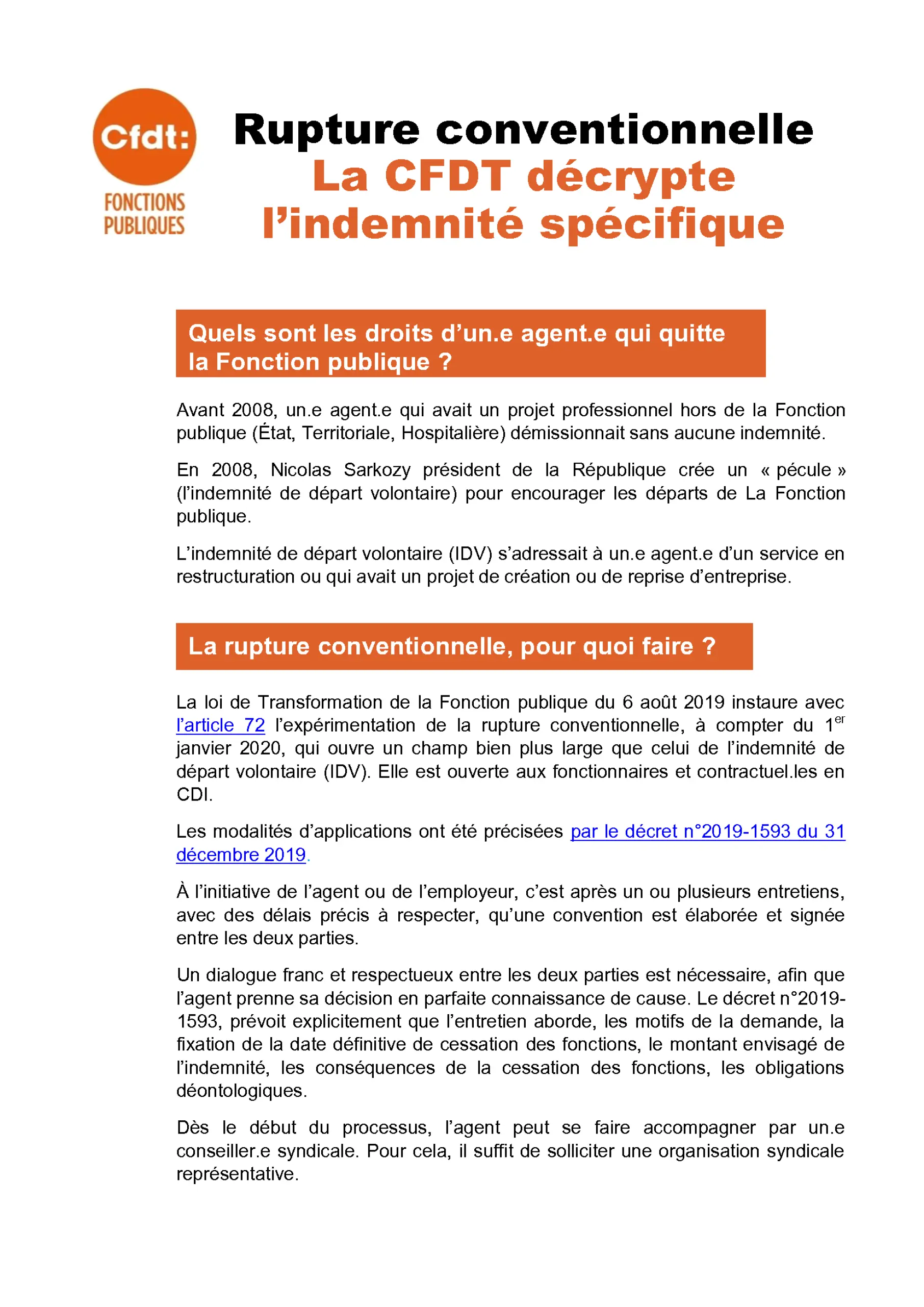 Rupture conventionnelle : la CFDT décrypte l'indemnité spécifique