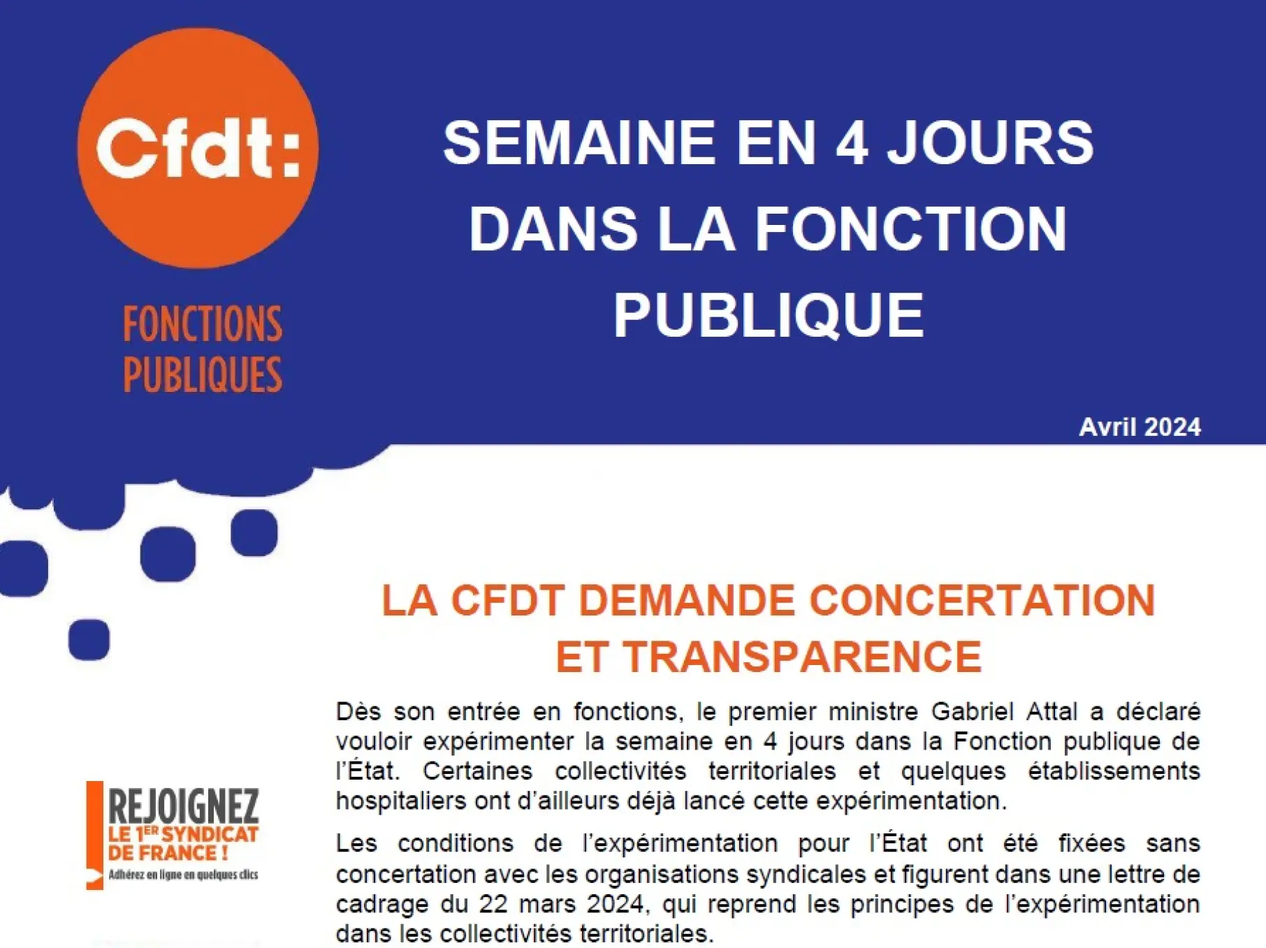 Semaine en 4 jours dans la fonction publique : la CFDT demande de la concertation et de la transparence